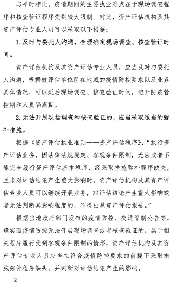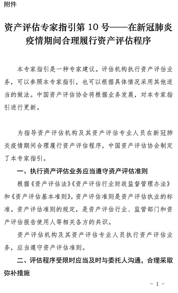专家指引第10号在新冠肺炎期间合理履行资产评估程序